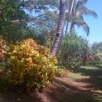 There several varieties of tropical flowers and trees including sago palm, coconut, banana, coco, Guava, Avocado, Ginger Lily, Torch Ginger, Poinsettia, Croton, Haliconia, and more.